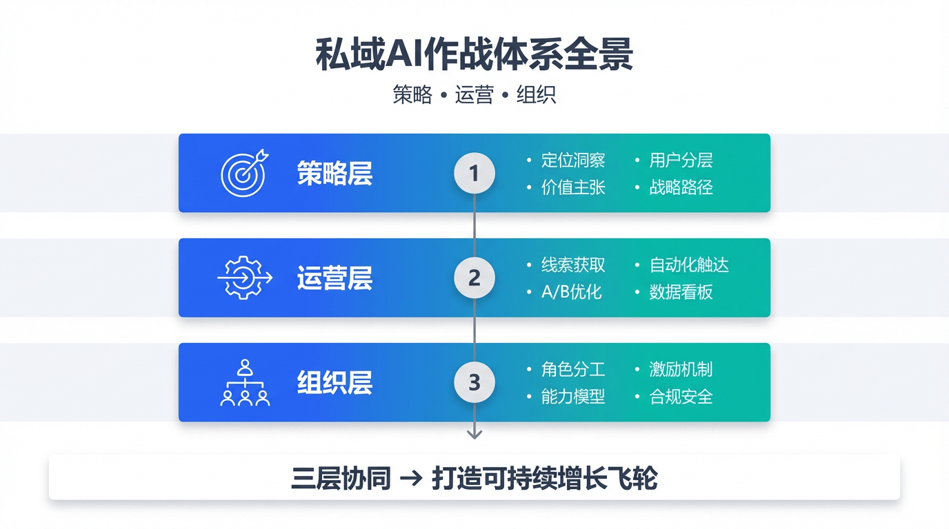 仍需一个更完整的系统来支持。私域AI是一个笼盖策略、运营、组织的全周期智能系统,为企业正在瞬息万变的市场中博得了主要的决策时间和合作劣势。像一个懂营业、懂客户的专家团队,但其AI能力往往是外挂式而非原生式的。