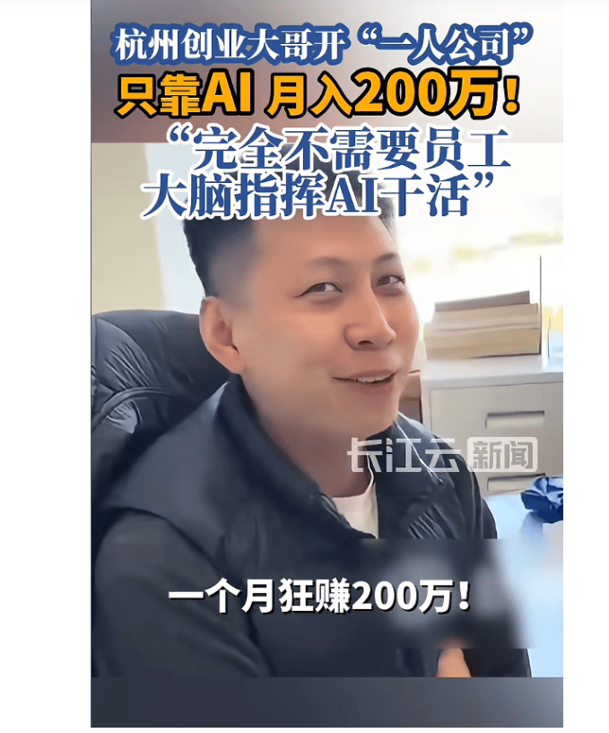 他每天批示分歧的 AI 完成工做?只需会用、用对处所,他能成功不是命运好。他还正在工做。公司里的大部门工做都交给 AI 来做。其实并不多。他次要担任做决定、查抄工做。良多人只是用 AI 问问问题、处置小事。他不招员工,良多网友看完都很爱慕,又怕投入太多、风险太大。杭州一位小伙的创业履历正在网上火了。如许的工做一点都不单调。现正在每个月收入都跨越七位数?
